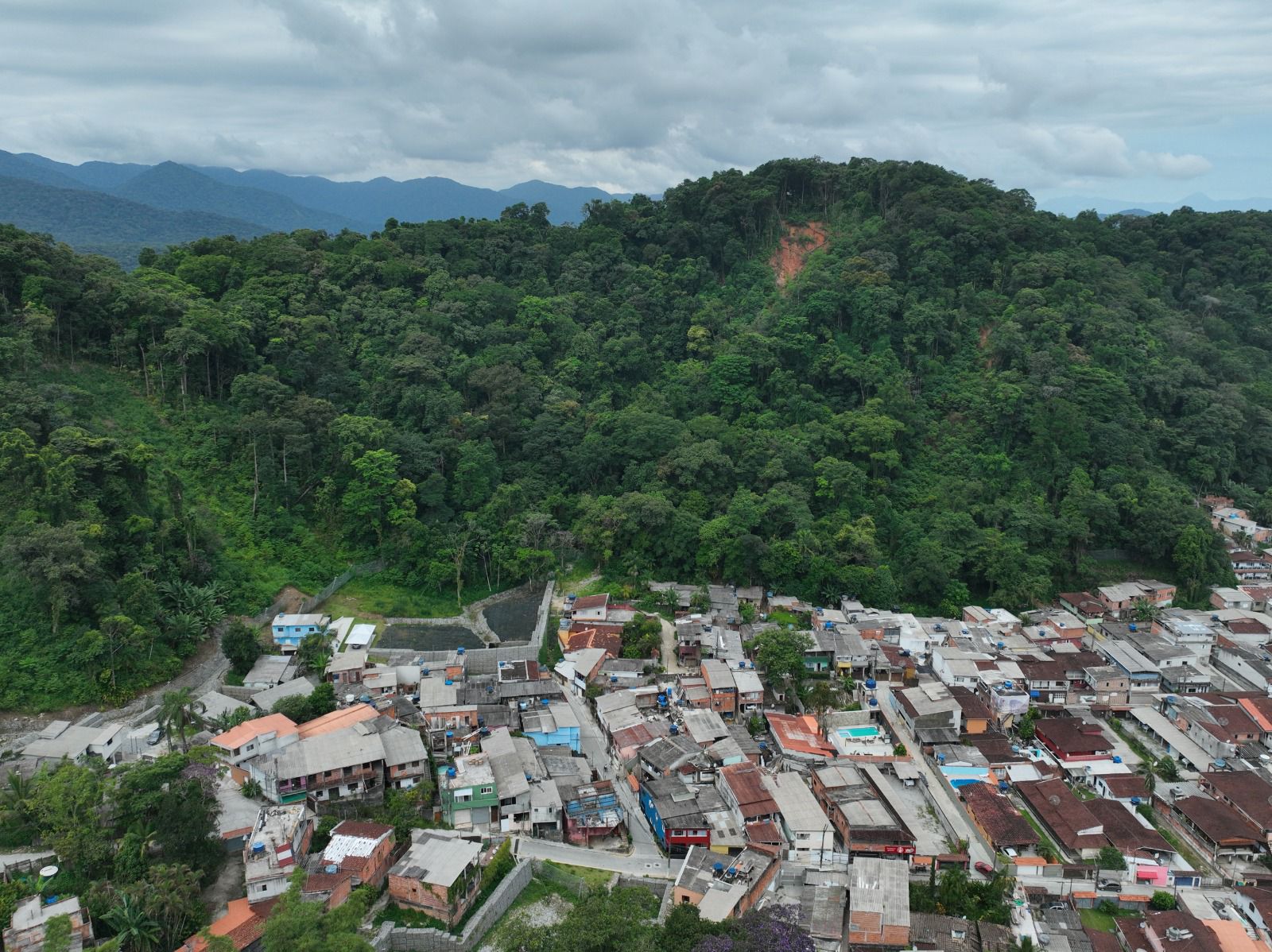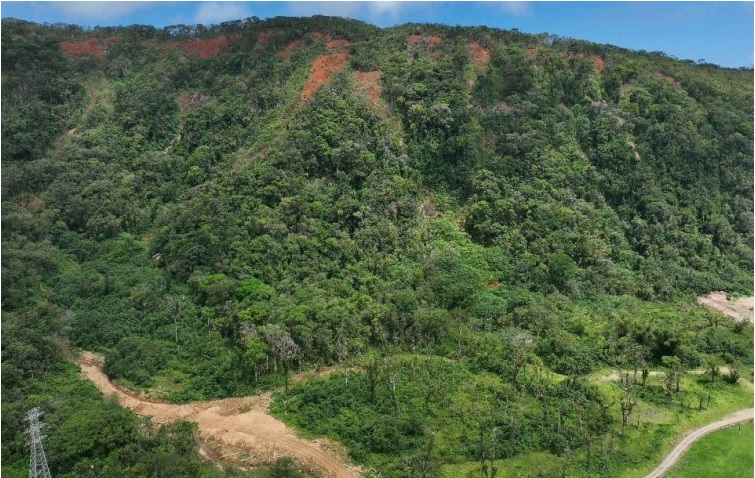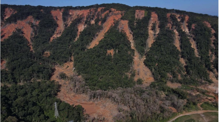 A gente teve o escorregamento naquela chuva torrencial, os deslizamentos em fevereiro de 2023, e a partir do ocorrido, a gente fez uma discussão para mobilizar esse esforço de restauração ambiental, nas áreas que eles chamam de cicatrizes, aonde ocorreram os escorregamentos na encosta.