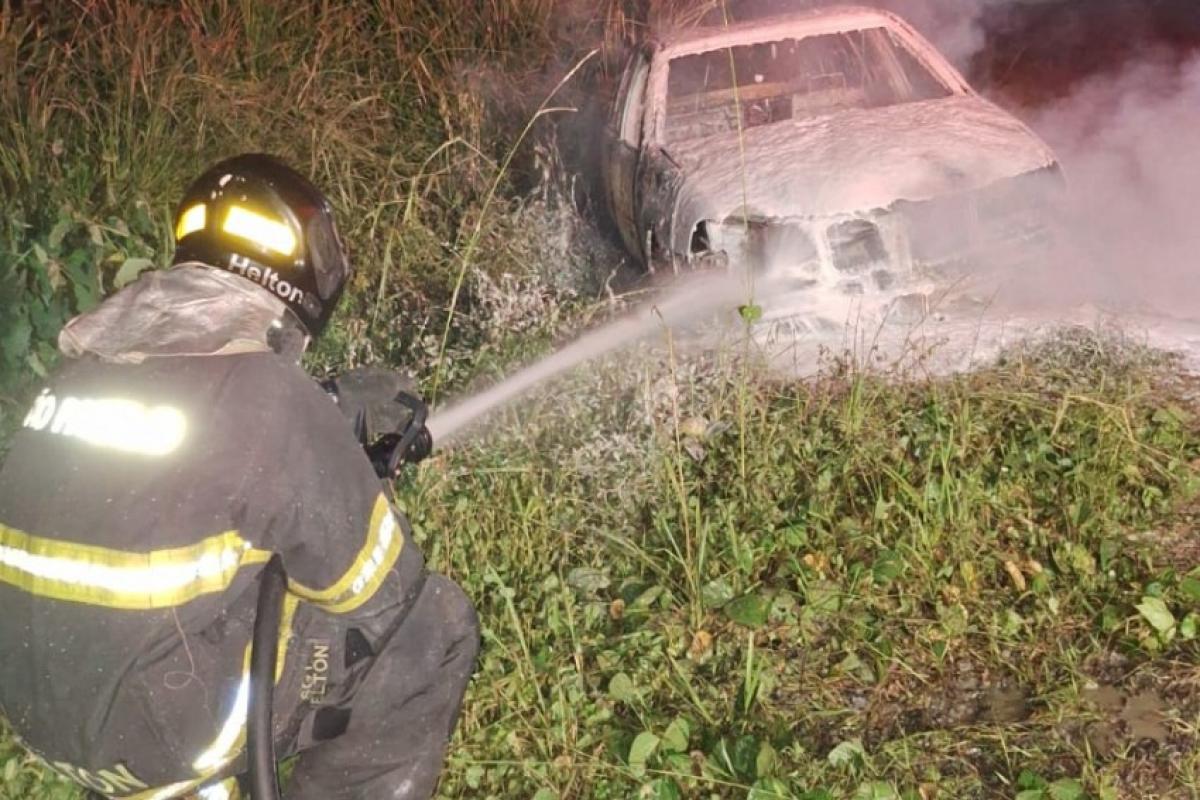 O incidente ocorreu na noite de domingo (5), às 19h15. No local, a equipe localizou o automóvel abandonado, já completamente consumido pelas chamas, restando apenas um único foco ativo no motor.