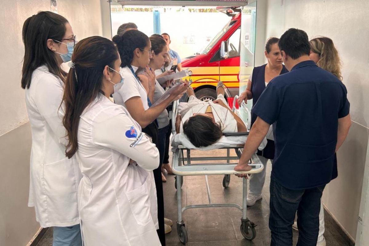 A capacitação in loco foi estruturada de forma prática e aplicada, contemplando a apresentação dos objetivos da simulação, a releitura do protocolo institucional de AVC, o reforço do funcionamento da rede de TeleAVC, além da realização de simulação realística e um momento dedicado à discussão e análise das ações executadas pelas equipes.