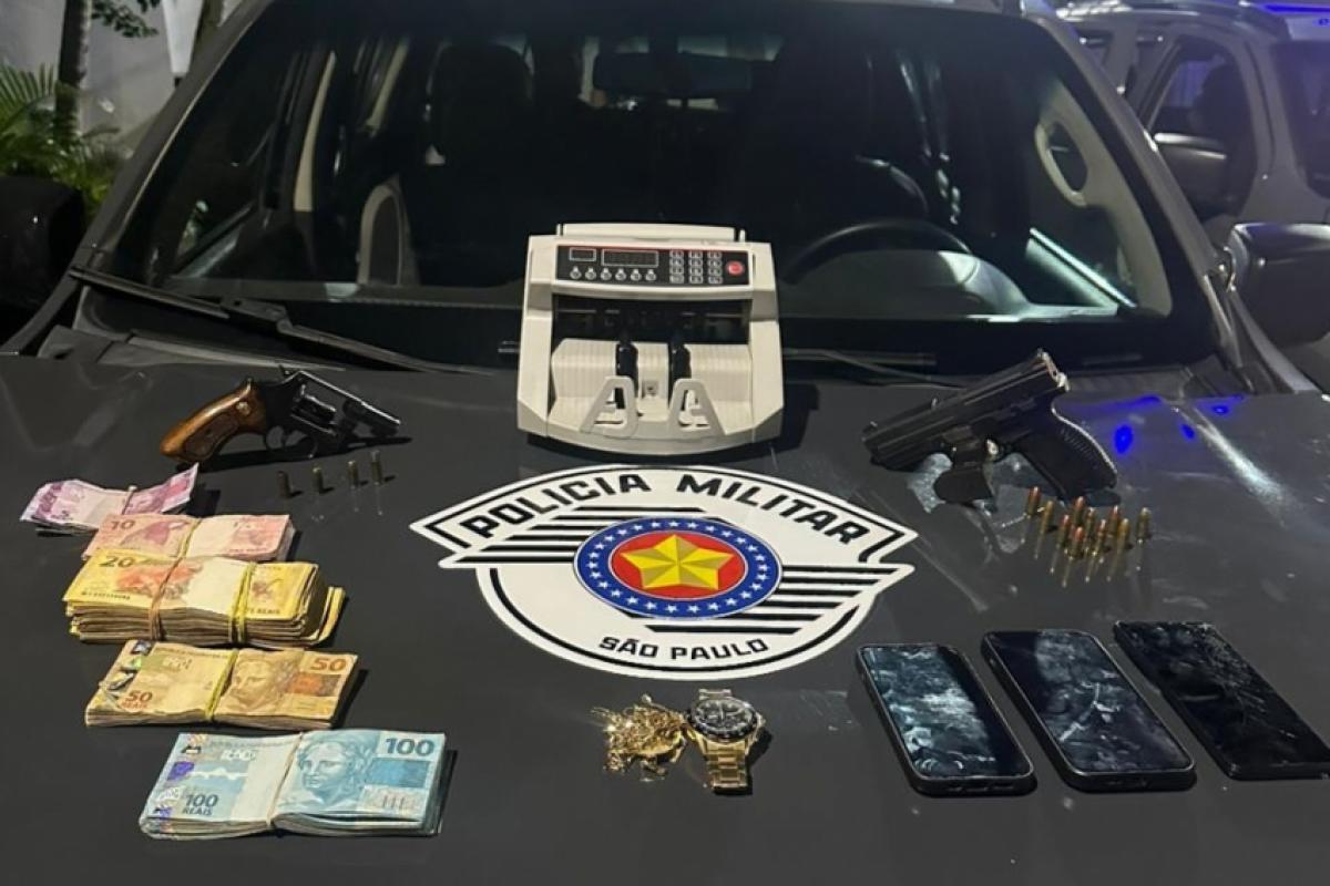 Além das armas, os policiais apreenderam uma máquina de contar dinheiro, item incomum em ocorrências desse tipo. Segundo a polícia, o grupo estava armado e carregava dinheiro em espécie.
