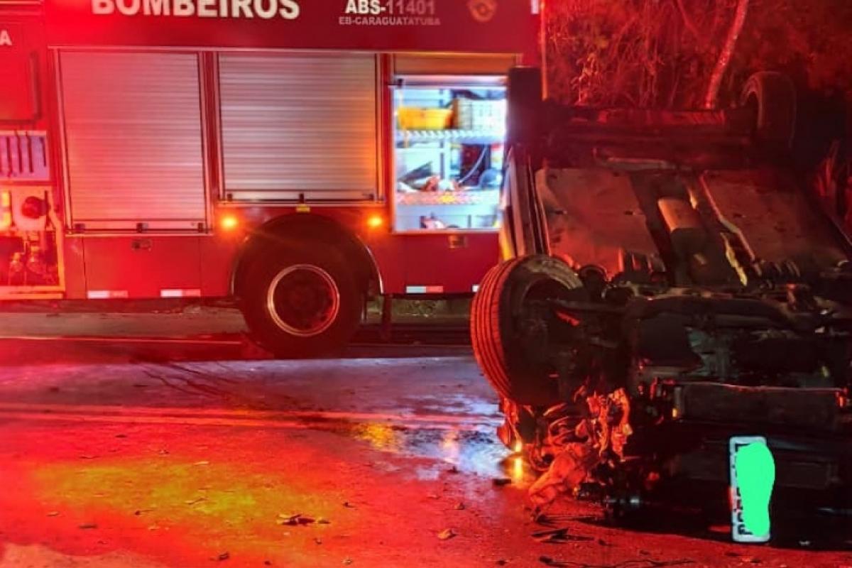 Um capotamento deixou duas pessoas feridas na noite deste sábado (25) na Rodovia Rio-Santos (SP-55), em Caraguatatuba.