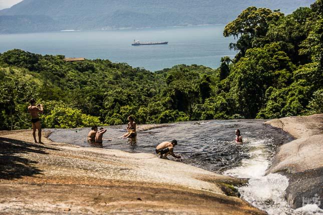 Quer mais? O local possui uma vista diretamente para a orla costeira da Ilhabela. Antes ou depois do banho de cachoeira, também é possível curtir um banho de mar.