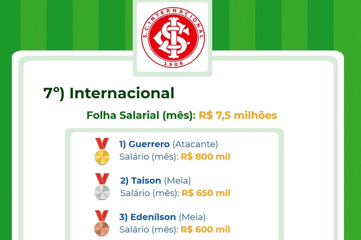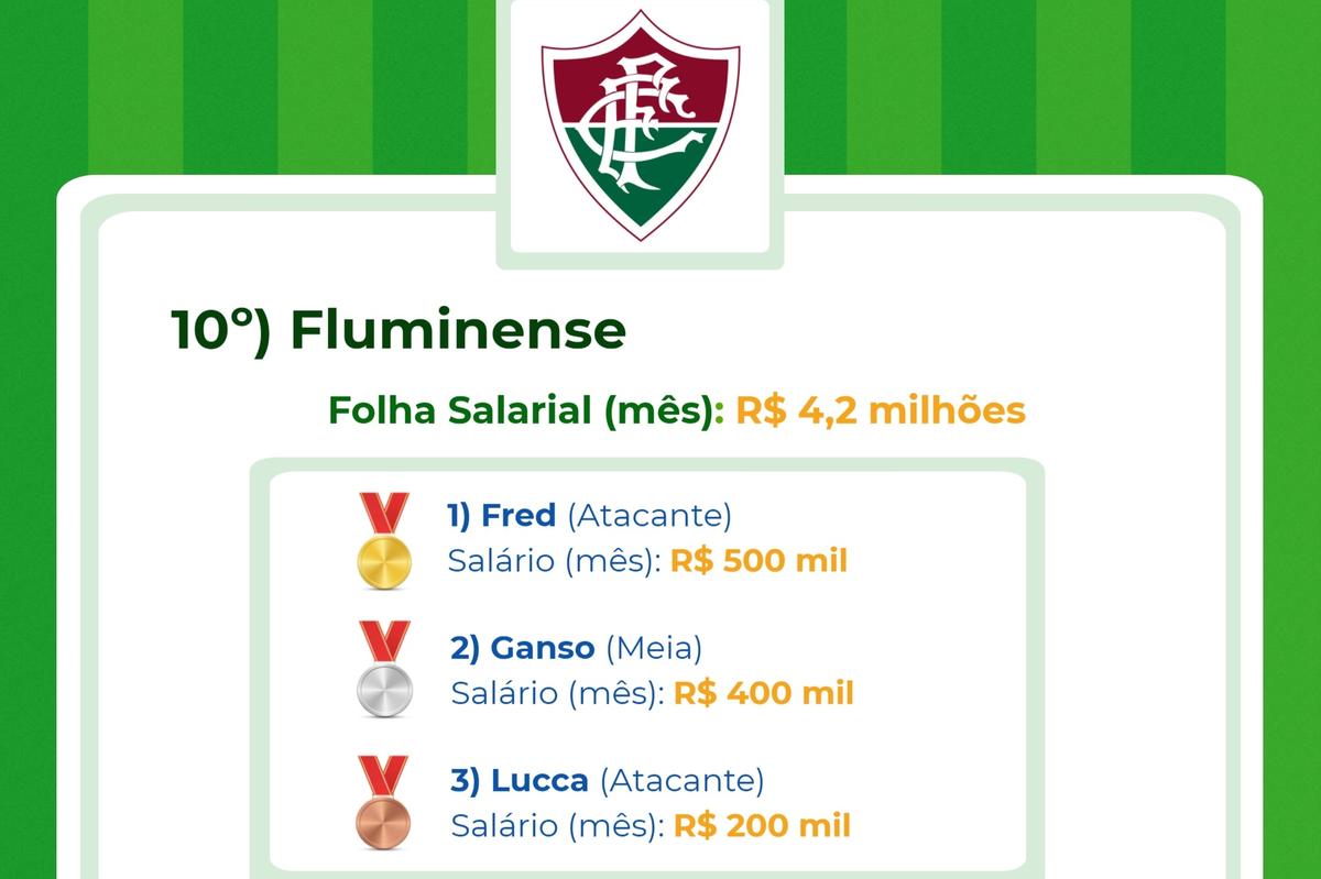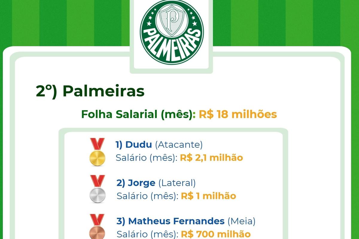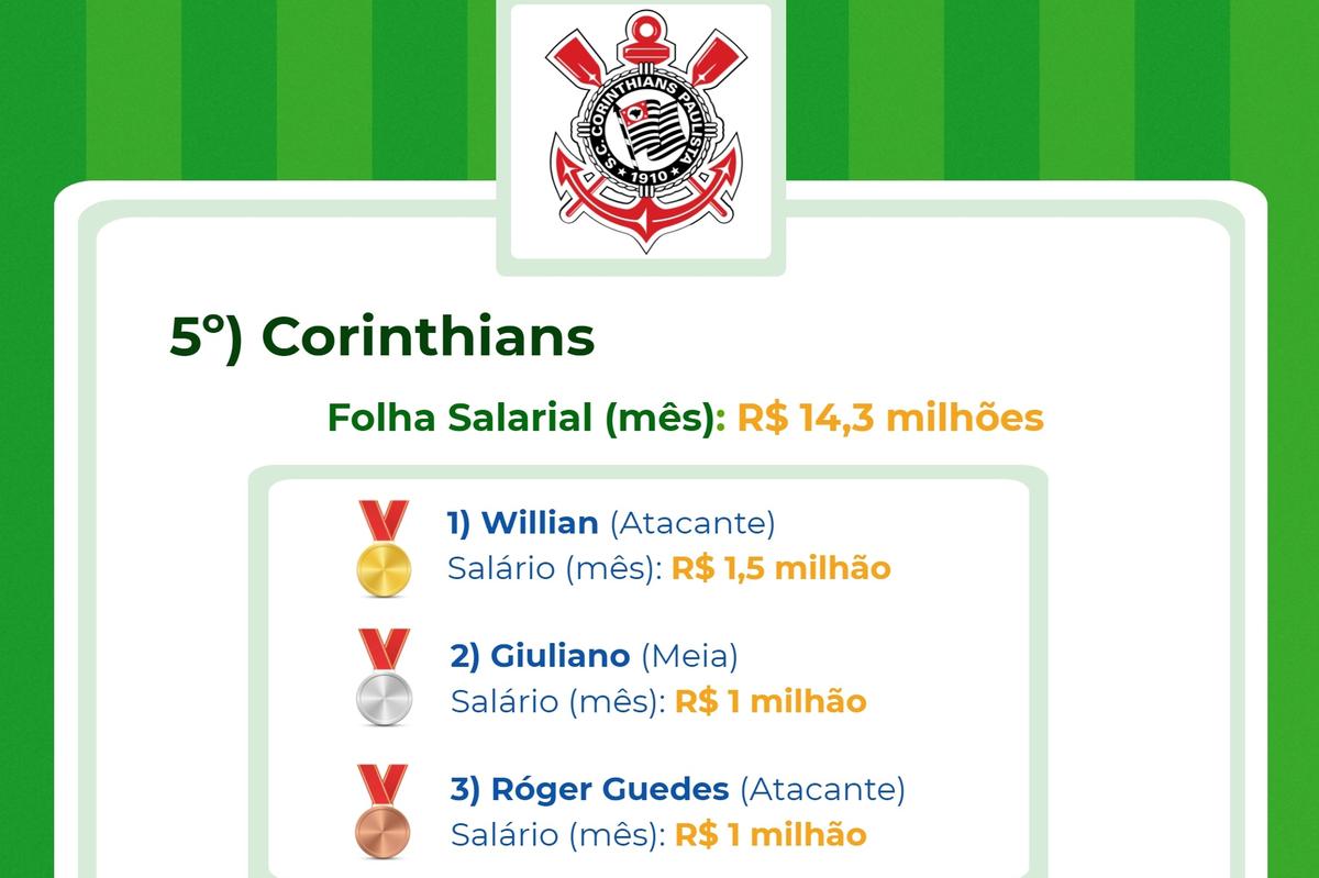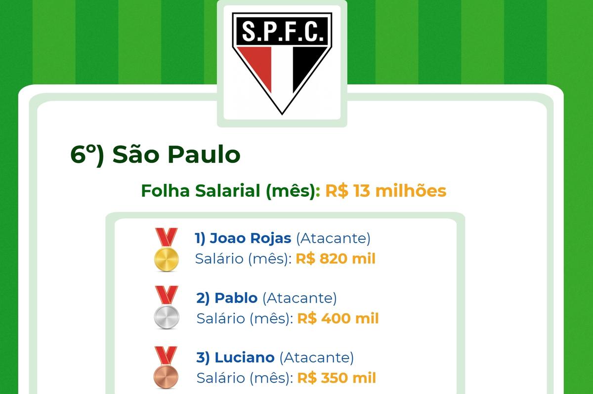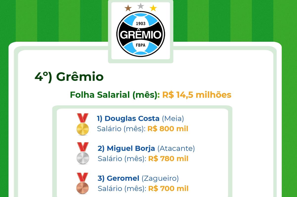 É que revela um estudo realizado pela plataforma CupomValido.com.br sobre a folha salarial dos clubes no Brasil. Foram considerados salários CLT, direito de imagens e luvas (valor adicionais pago no início do contrato).