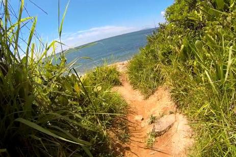 Para chegar na Praia Brava, deve-se realizar um percurso de aproximadamente 20 minutos de uma trilha de média complexidade.
