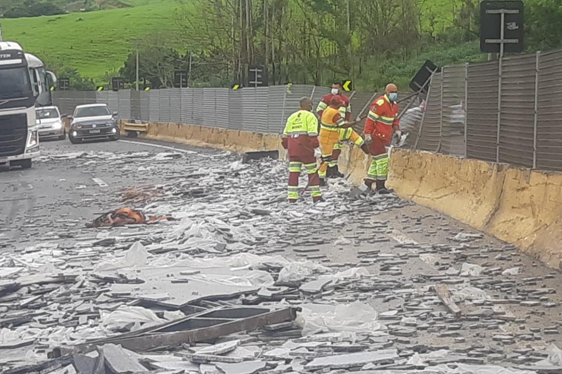 De acordo com a PRF (Polícia Rodoviária Federal), o acidente ocorreu na altura do km 22, sentido São Paulo e interdita duas faixas da pista.