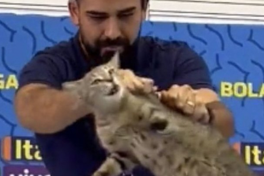 O gato faz uma expressão de dor durante o gesto, que foi duramente criticado nas redes sociais. Dois dias após o ocorrido, o Brasil foi eliminado pela Croácia.