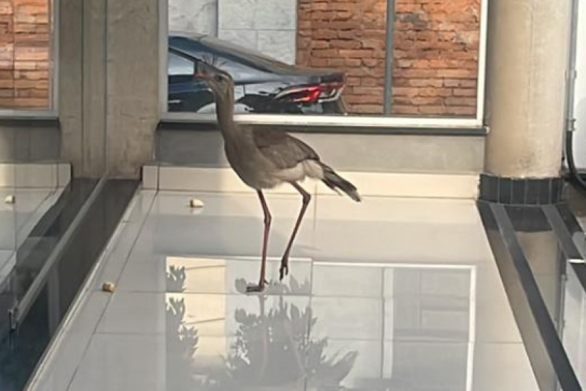 Um Siriema agitada invadiu uma escola e um comércio nesta terça-feira (26), na área central de Piracicaba, foi resgatada e solta em seu habitar natural pela Guarda Civil.