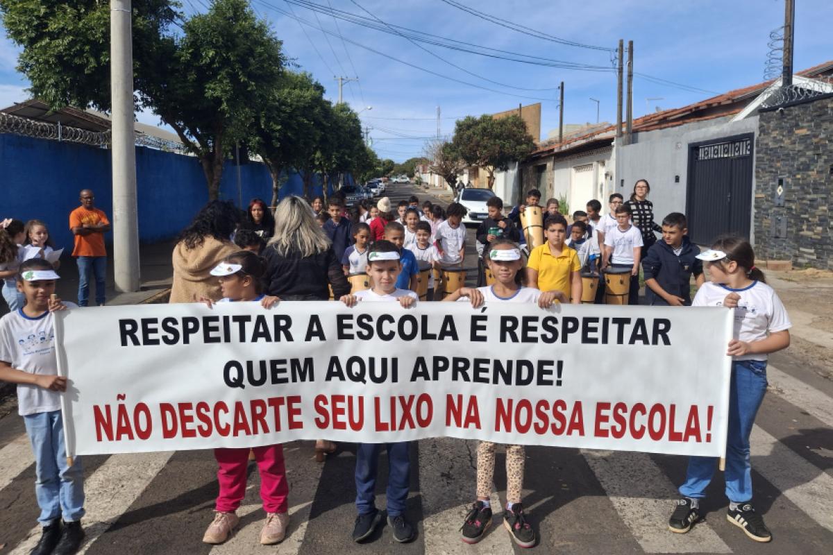 Em comemoração ao Dia Mundial do Meio Ambiente, celebrado nesta quinta-feira, 5, a Emeb Profª Luzinete Cortez Balieiro, localizada no Jardim Palestina, em Franca, promoveu uma caminhada nos arredores da escola com alunos e professores para alertar a comunidade sobre o descarte incorreto de lixo.