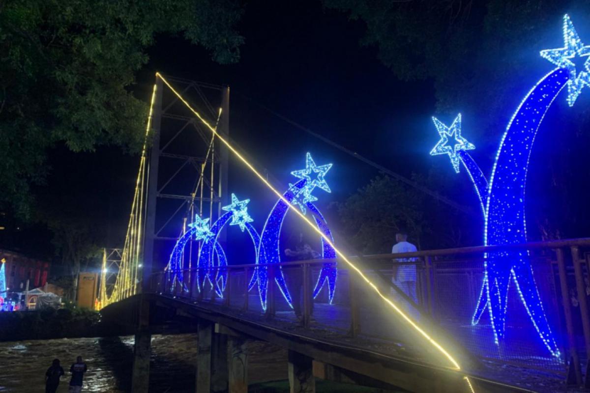 A decoração natalina da Passarela Pênsil, localizada na Rua do Porto, em Piracicaba, foi inaugurada na última sexta-feira (12), com o acendimento oficial das luzes. O evento marcou o início da programação de Natal na região do Engenho Central.