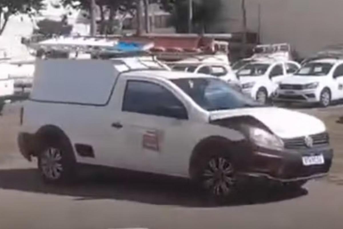 Imagens gravadas por outros funcionários mostram o homem utilizando um dos veículos da empresa para colidir, de forma intencional, contra carros estacionados no pátio. Com o impacto, o portão principal do imóvel também foi derrubado.