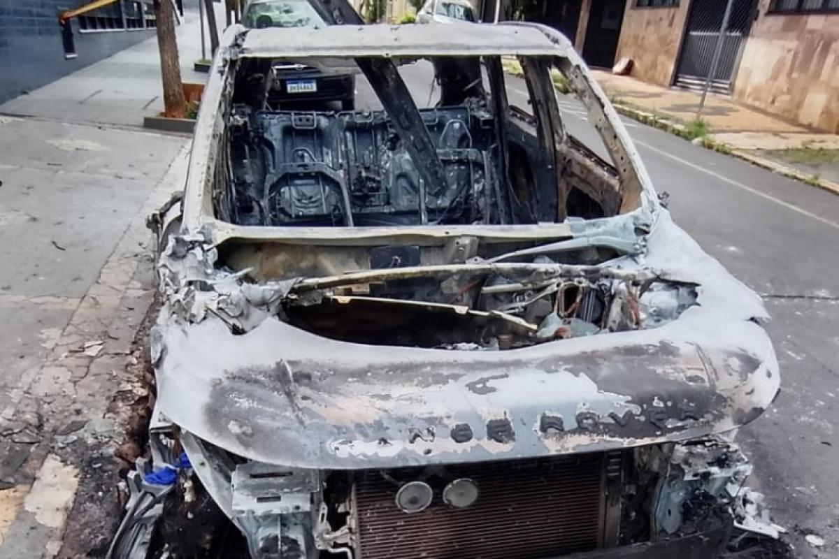 Um carro foi completamente destruído por um incêndio na madrugada desta quarta-feira (15), no Centro de Piracicaba, em uma rua residencial próxima à Unimed Piracicaba.