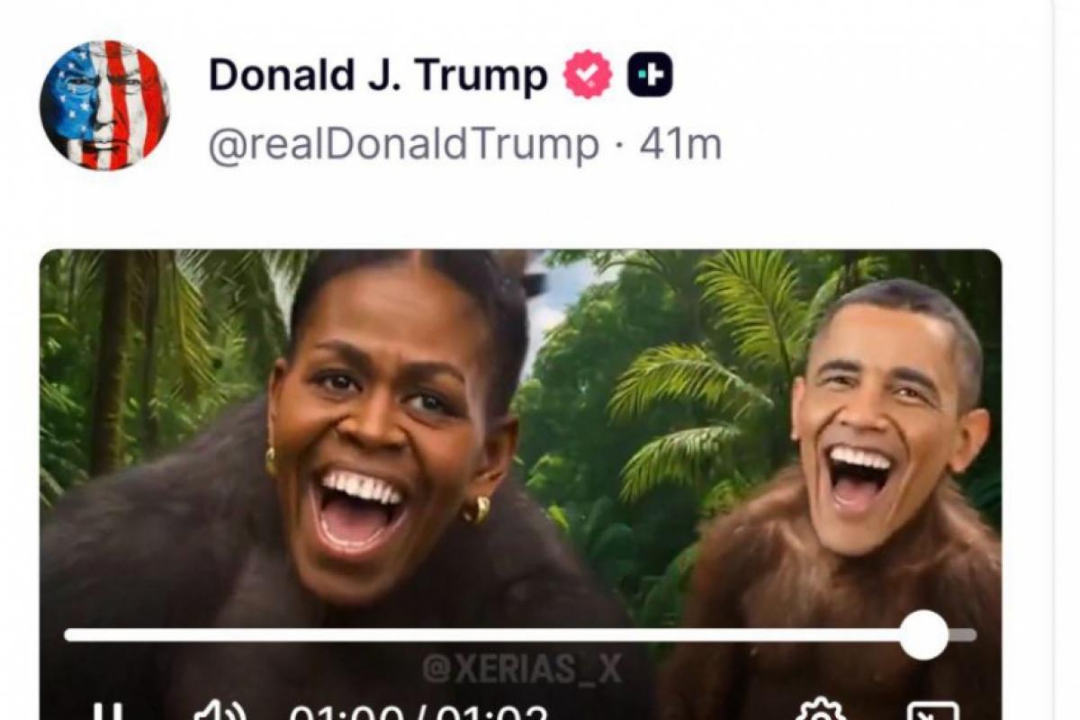 O presidente dos Estados Unidos, Donald Trump, publicou na quinta-feira (5) um vídeo em sua rede social, a Truth Social, que provocou manifestações de integrantes do Partido Democrata. O conteúdo exibe imagens do ex-presidente Barack Obama e da ex-primeira-dama Michelle Obama, cujos rostos foram inseridos em corpos de macacos.
