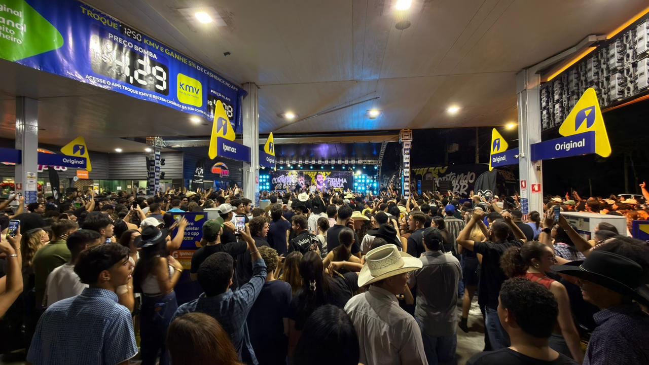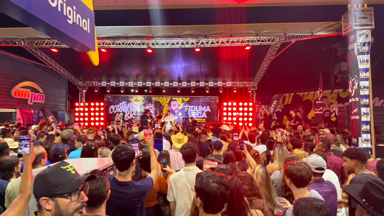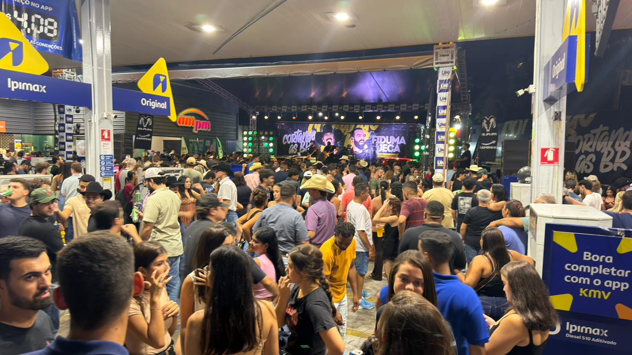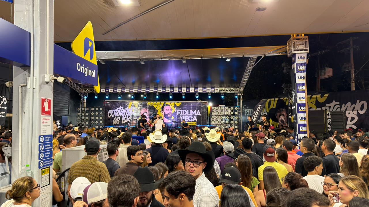 De acordo com informações apuradas no local, a apresentação faz parte da turnê “Cortando as BRs”, projeto em que os artistas percorrem o país realizando shows em postos de combustíveis. A proposta inusitada tem chamado atenção justamente pelo formato acessível e próximo do público.