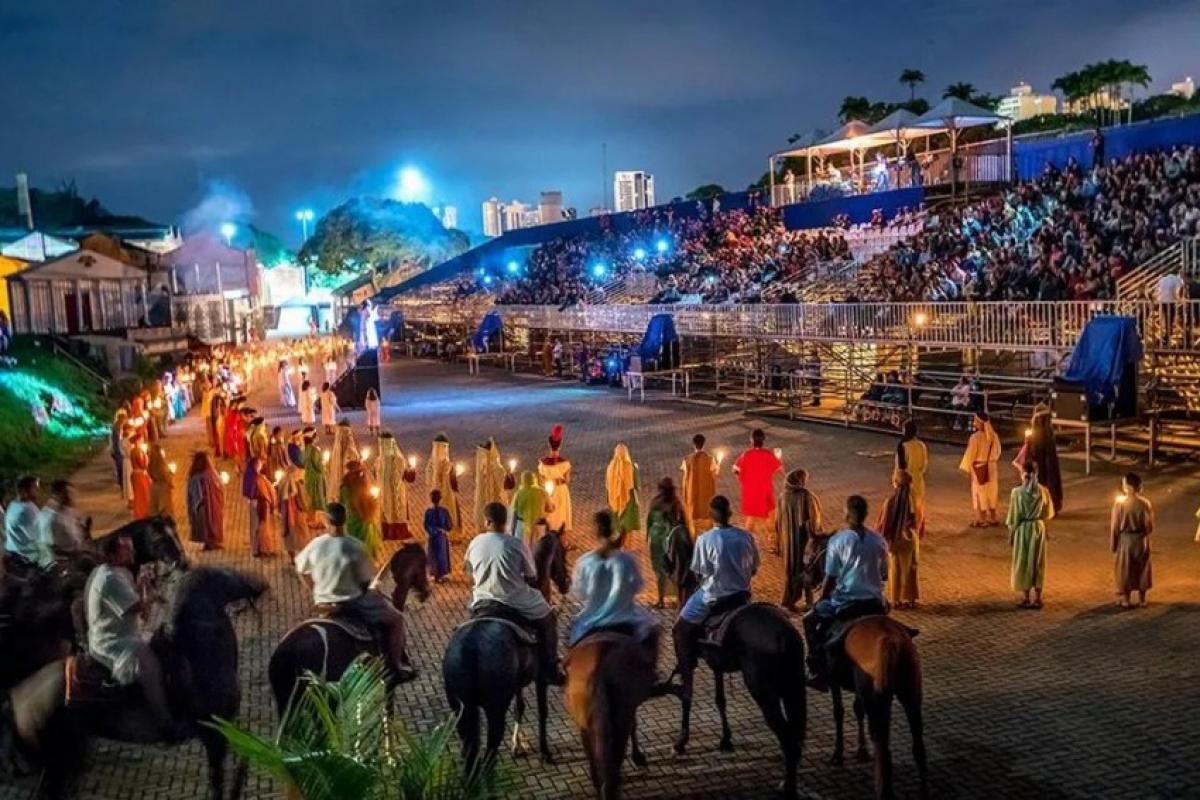 A montagem envolve elenco e equipe técnica responsáveis pela execução das cenas, figurinos, iluminação e sonorização. A produção mantém a realização anual do espetáculo no município.