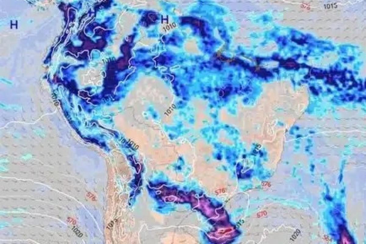 Na quarta-feira (1º), o cenário se agrava: há possibilidade de temporais mais amplos, com ocorrência de granizo e ventos fortes, embora sem acumulados elevados de forma generalizada.