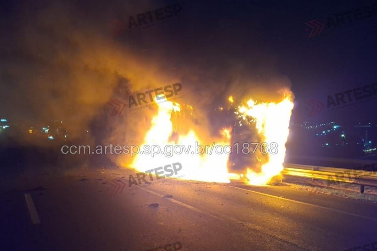 De acordo com a concessionária, o veículo seguia pela faixa 3 de rolamento quando, por motivos ainda desconhecidos, teve início o incêndio.