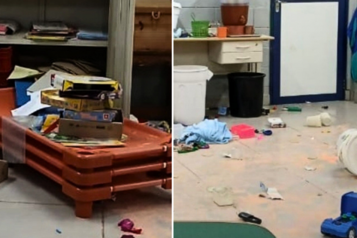 Além do furto, o espaço foi vandalizado. Imagens registradas após o ocorrido mostram salas reviradas, com objetos espalhados pelo chão, evidenciando os danos causados.