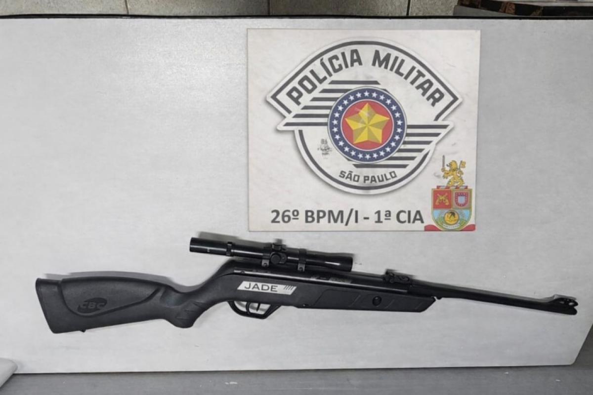 Os policiais se dirigiram até a residência do suspeito, que recebeu os agentes, apresentou sua versão dos fatos e entregou voluntariamente uma carabina de pressão.